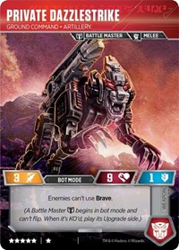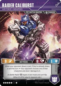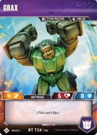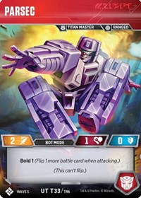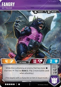 The more Showing Off this guy does, the stronger he gets! Recall that meager attack of 3 that we used to have? Not anymore. Scaling upwards with each flip back to Alt mode unless your opponent wants to give you more cards. This is the most powerful character within the confines of Wave 5 and, frankly, within the entire lifespan of this game. Play him and flip him often and you will find yourself on the winning side.