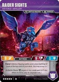 After resolving the ability, you still have access to both your action and upgrade for the turn. Rapid Conversion will put him into Body mode. It’s awkward since there are very few and niche times where Perceptor needs to be in this mode for the second turn of the game, because this is how he attacks the majority of the time. However, with a Showing Off, you simply get to bypass an entire flip and get right back to Alt mode which rewards you with more cards, yet again. Realize that on that initial flip back into Alt mode gives 4 looks at finding Showing Off if you are searching for it. Getting it gives you another shot at 4 cards to set up the following turn. The power level of this play pattern is so high that it justifies having 3 complete blank pips in the deck.