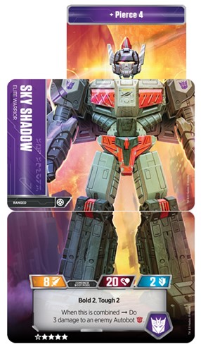 Sky Shadow requires 15 stars (no one plays both parts without the Stratagem) of your salary cap which allows Perceptor to sport a 2-star head or a 1-star head plus an additional star card. We get these options: